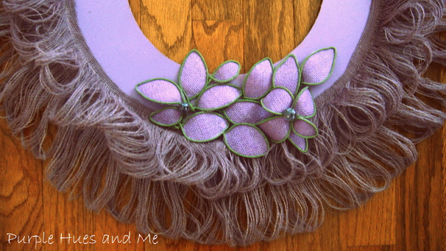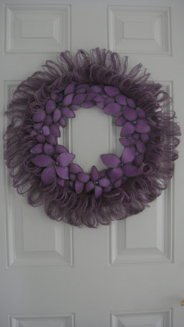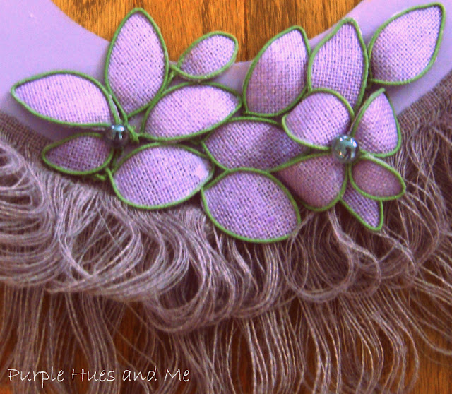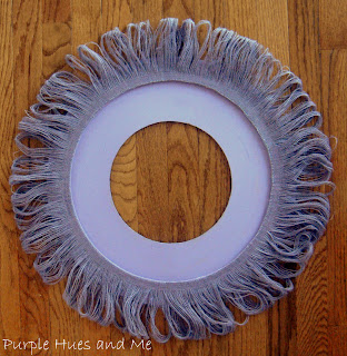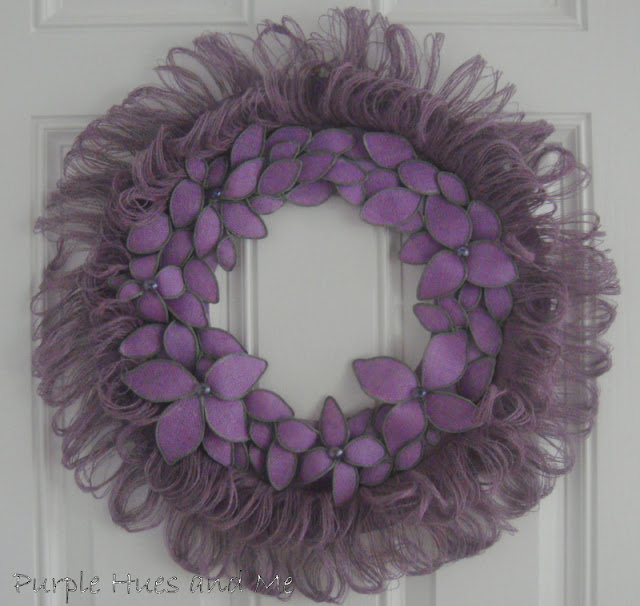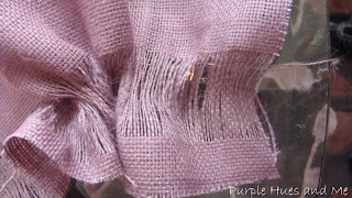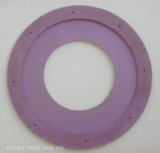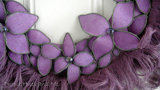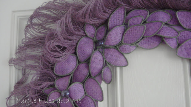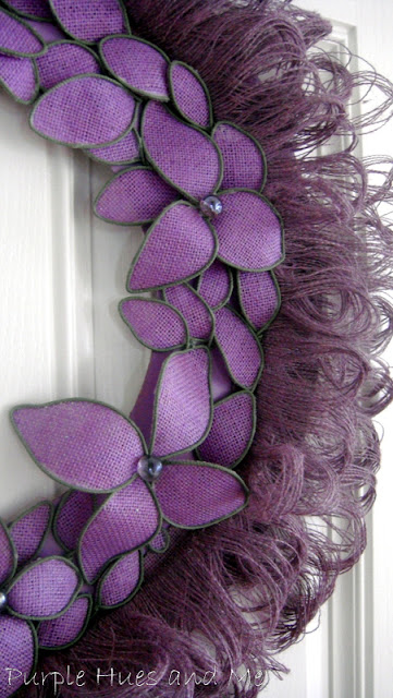 I then painted the wreath. Hmm, I know some of you are not fans of purple, but I wanted a wreath made out of a different shade of the usual brown/tan burlap. There are so many shades and prints in burlap now to choose from, so take your pick . . .