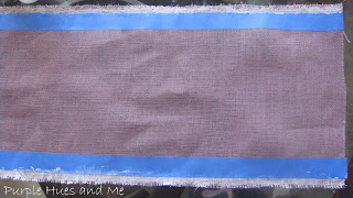 I coated two orchid color burlap strips, one – 8″x58″ (width of burlap) second – 10″x58″ with mod podge. After drying, I put painter’s tape approximately 1/4″ below both edges of the entire length of fabric. *You can skip this part if you can apply an even coat of clear drying glue. I couldn’t. Using an old credit card or a cardboard edge, smear glue along the edges.