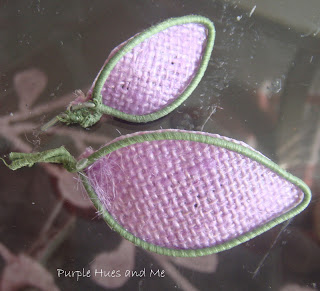 Since I had a hot glue gun with a fine nozzle for detail work, I tried gluing cut out pieces of burlap to the petals. This looked messy and sometimes the glue would dry faster than I could press it together.