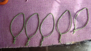 While the wreath dried, I started on the flowers. I used another color of burlap in lavender which was a little lighter. I followed the tutorial from Craftionary, but I could not make my flowers like she made her beauties. I coated my burlap with mod podge to make the fabric stiff. While that dried, I twisted fabric coated floral stems into the shape of flowers using three different sizes of cardboard tubes.