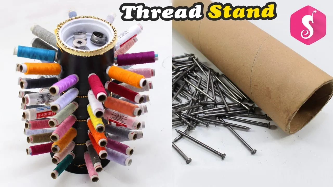 How to Make a Thread Stand Using a Cardboard Roll and Nails (Reusing)