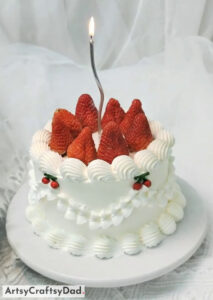 strawberries-topping-and-curve-candle-easy-cake-decoration-idea