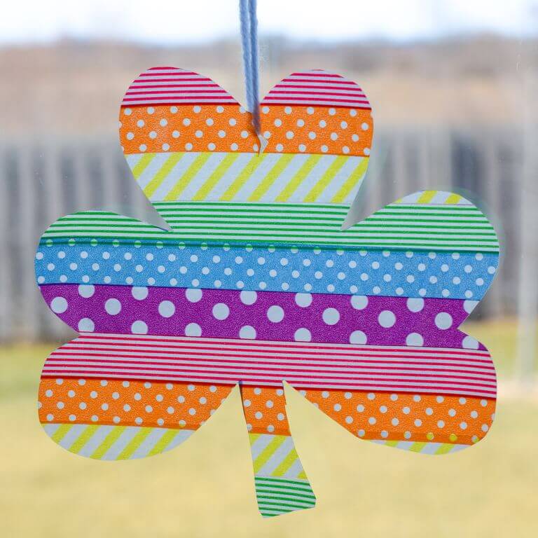 St Patricks Day Suncatcher Craft Idea For Kids Using Washi Tapes